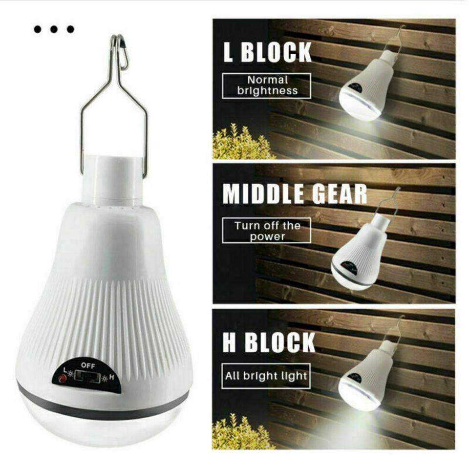 Ampoule LED d'urgence à charge solaire avec câble, pour extérieur, mobile, avec crochet, pour tente, camping, jardin