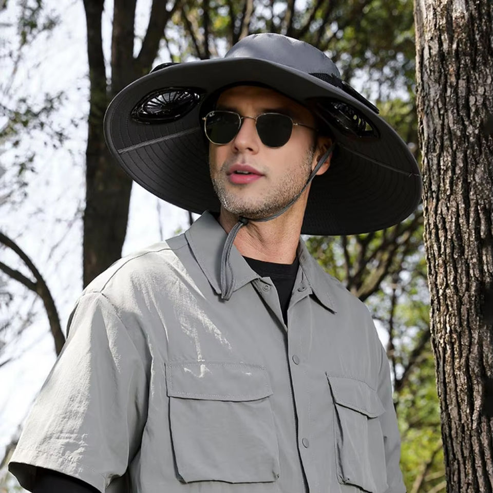 Chapeau ventilateur rechargeable à énergie solaire avec double alimentation pour les sports d'été en extérieur, réglable, unisexe, pour la pêche et les fêtes