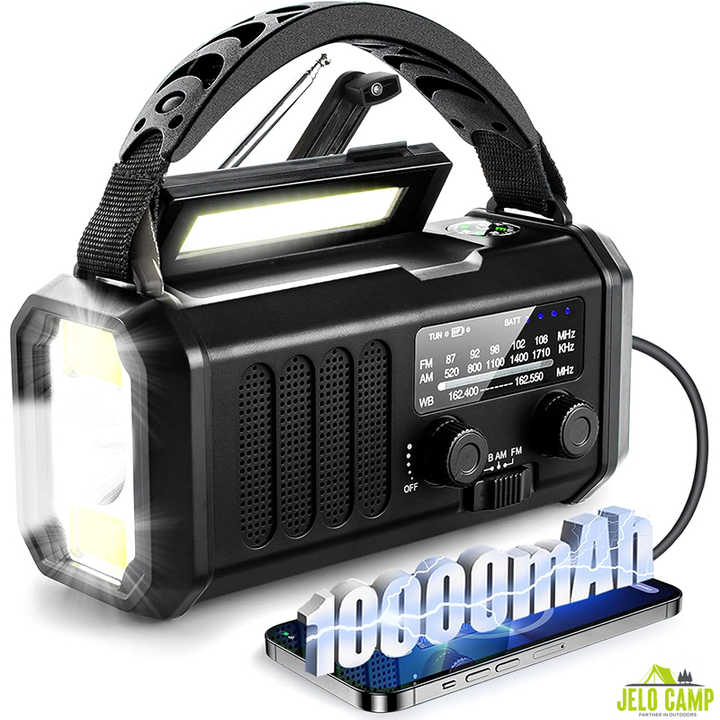 Radio météo solaire à manivelle d'urgence et batterie externe rechargeable 10000 mAh pour survie, préparation aux catastrophes et éclairage de camping en extérieur