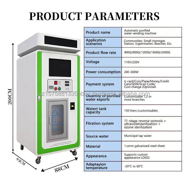 Personnalisation:Logo, système de paiement, niveau de filtrage et capacité quotidienne