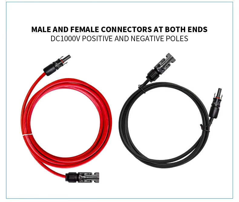 Câble d'extension solaire 2,5/4/6 mm² avec connecteur MC4, câbles d'alimentation, câble de panneau solaire avec conducteur en cuivre pour centrales solaires