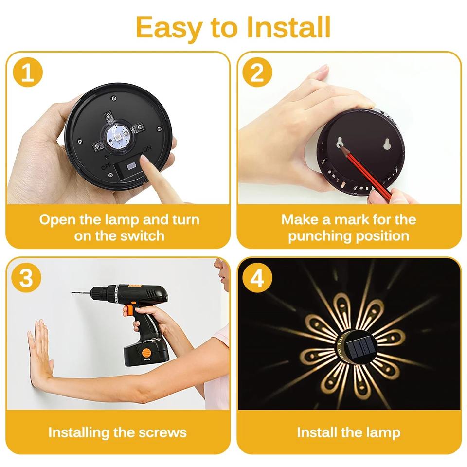 Lampes solaires décoratives d'extérieur pour clôture, jardin, marches, imperméables, effet ombre de fleur de prunier, pour mur et patio