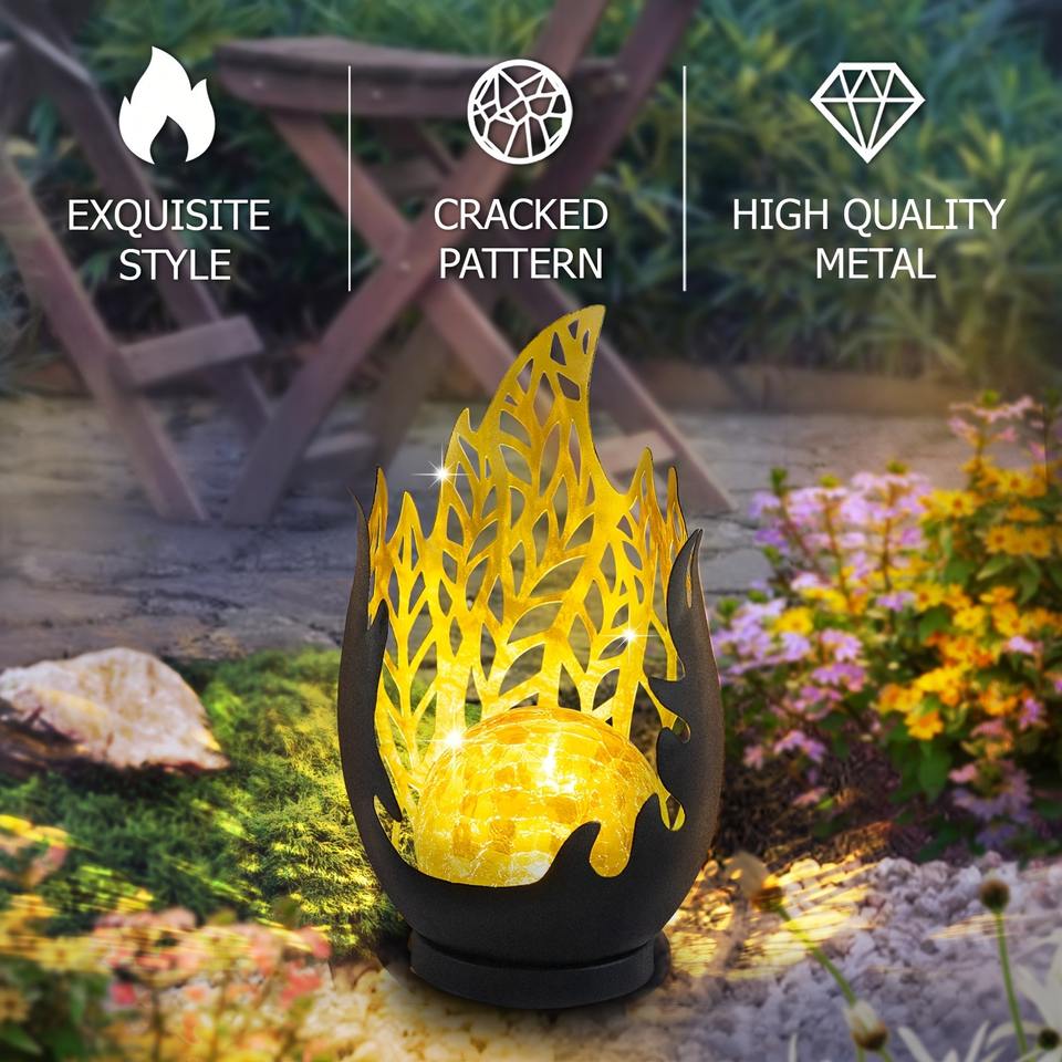 Lanterne solaire à flamme, lampe solaire à capteur automatique, statue de jardin lumineuse, batterie 600mAh, lampe à flamme en métal pour jardin extérieur