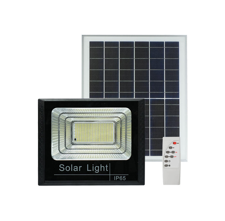 Projecteurs solaires avec télécommande, projecteur solaire 300W avec 3 modes d'éclairage, fonction minuterie, du crépuscule à l'aube