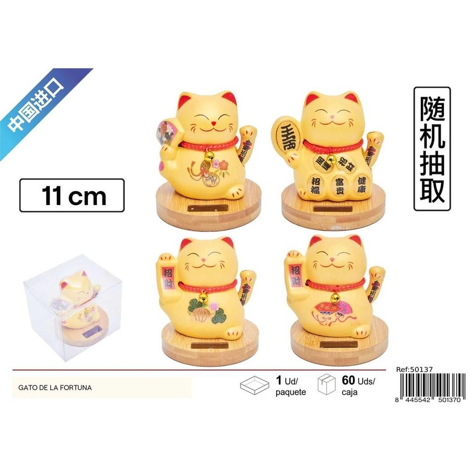 Solar Fortune Cat avec base en bambou 11 cm-Décoration orientale