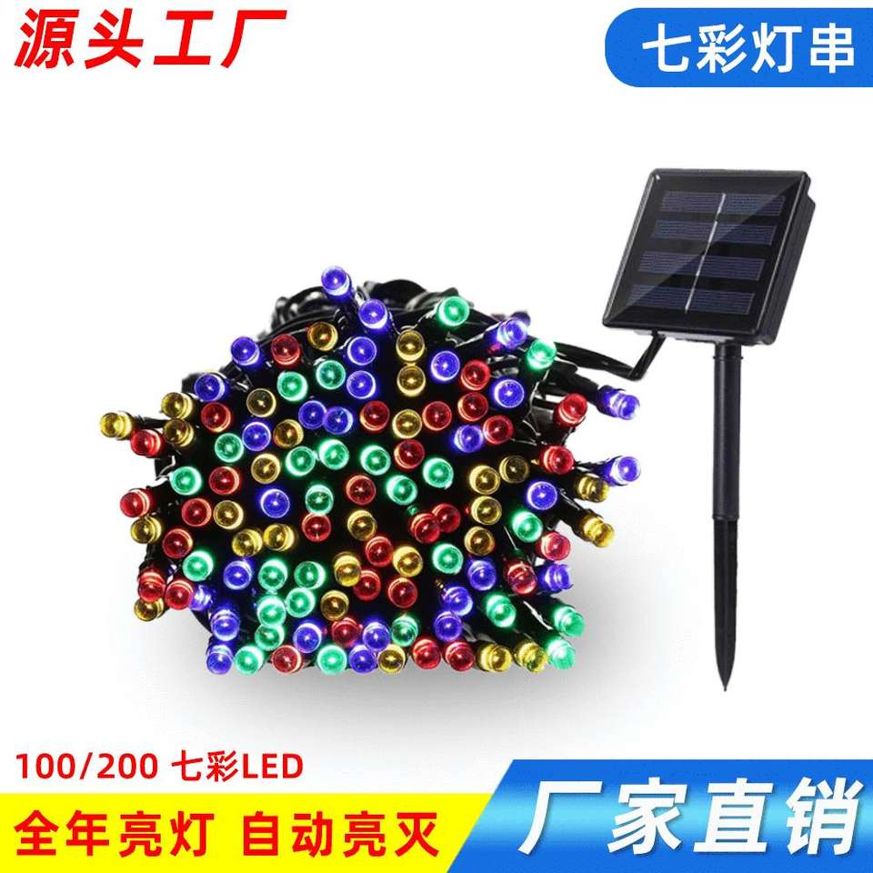 Lampes solaires de jardin 100 LED, guirlandes lumineuses sept couleurs pour cours, balcons, mariages, festivals, arbres de Noël, aménagement paysager