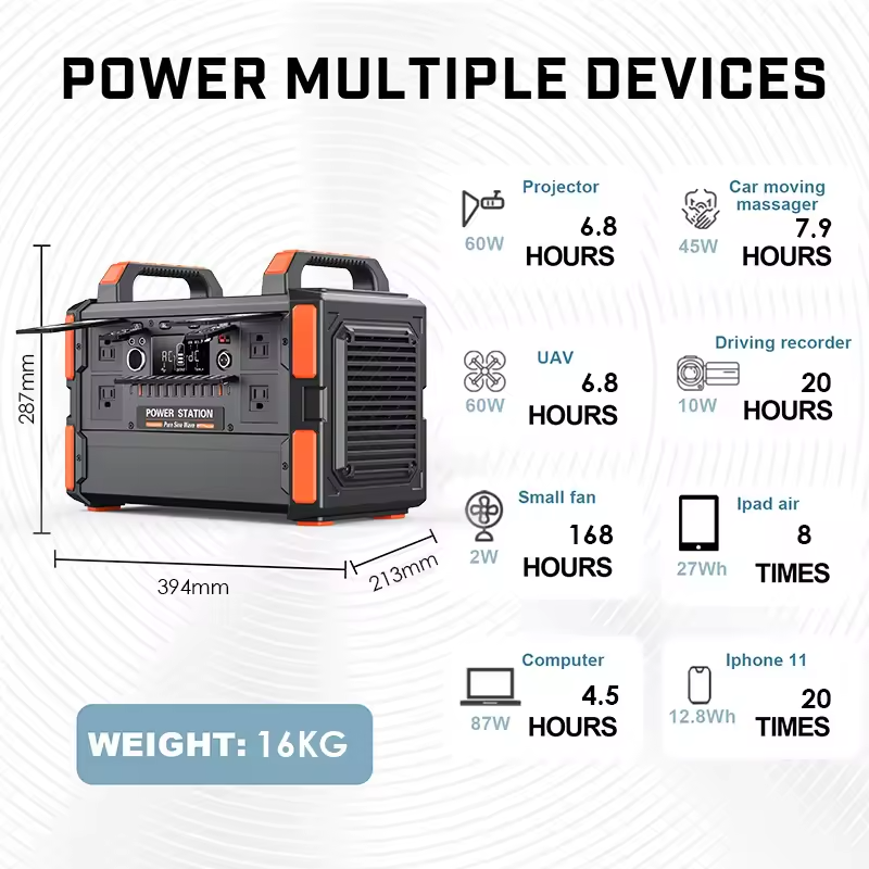 Sortie CC:8 X USB, 2 X ports Typ-c, 2X sortie 5521 DC, 1 X prise cigare