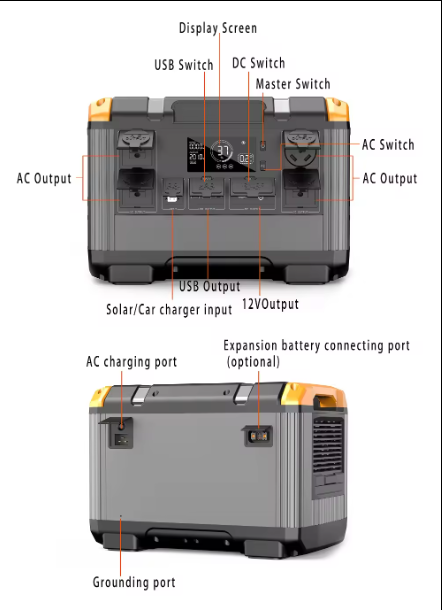 Remote Control, Type C, Flashlight, jump starter, RV Port, Cigar Lighter, Air Compressor