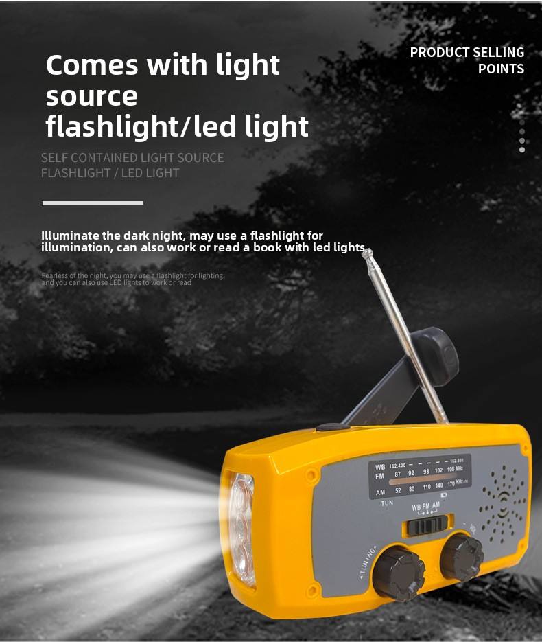 Nom du produit:Radio d'urgence à manivelle et à énergie solaire