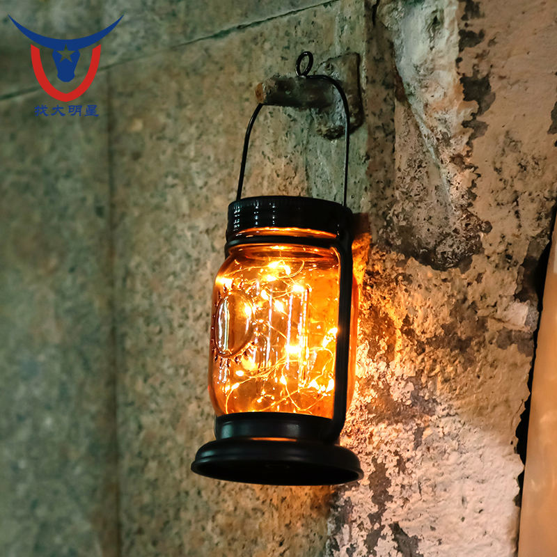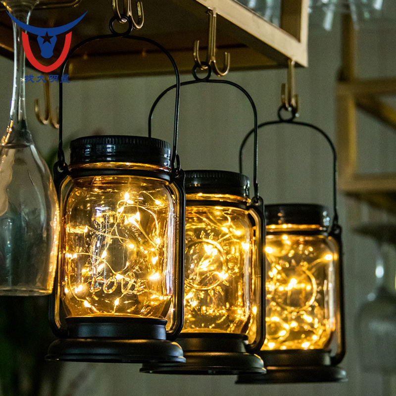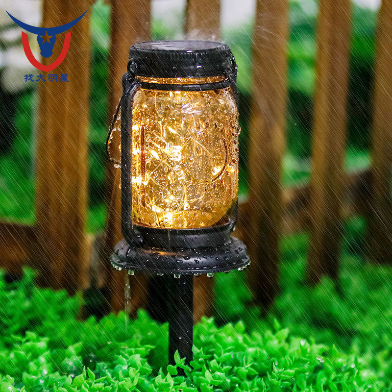 Lanterne solaire suspendue avec piquets, guirlande lumineuse solaire extérieure étanche en forme de bocal Mason, lampe décorative vintage en verre