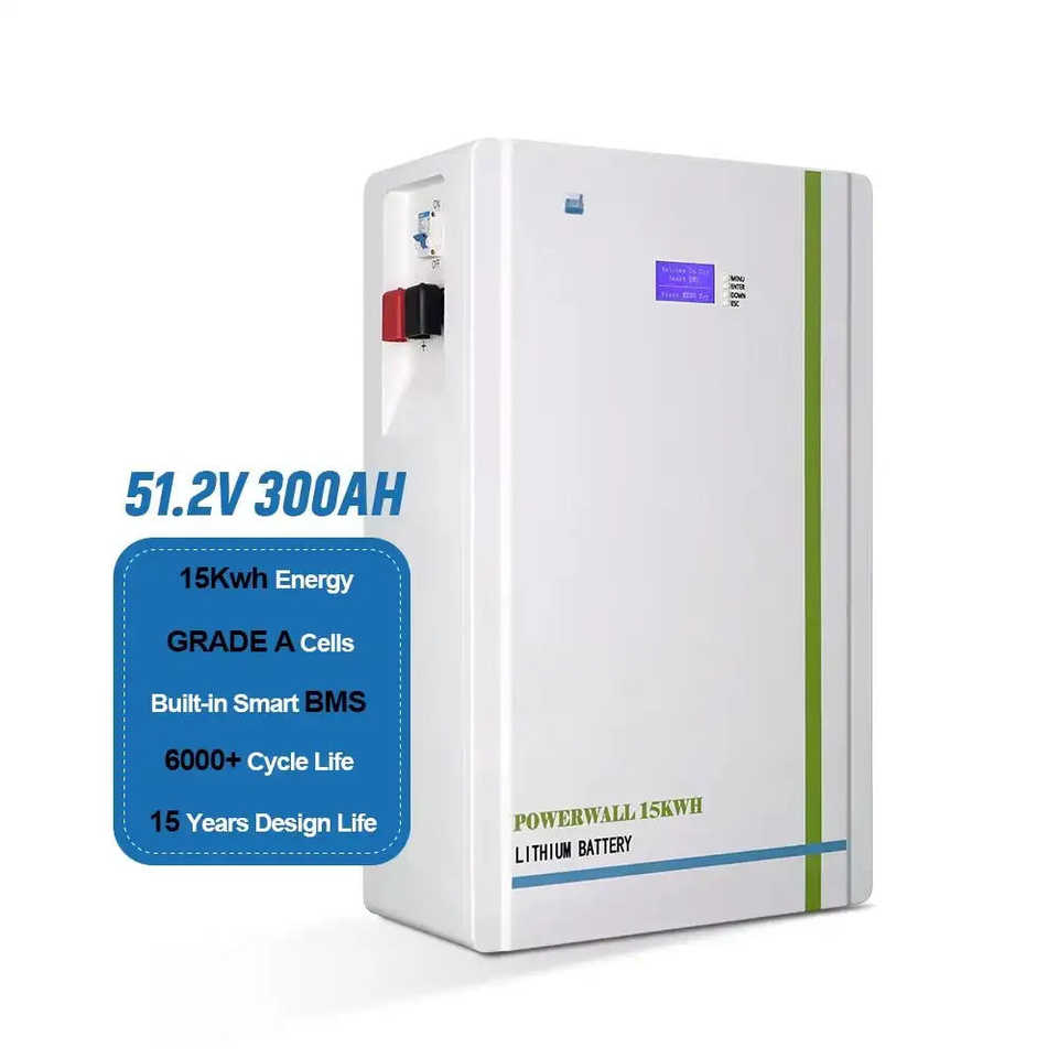 Système de stockage d'énergie solaire domestique 48v 51.2v 300ah 200ah 100ah Batterie Lifepo4 10kwh 15kwh Type séparé pour usage domestique