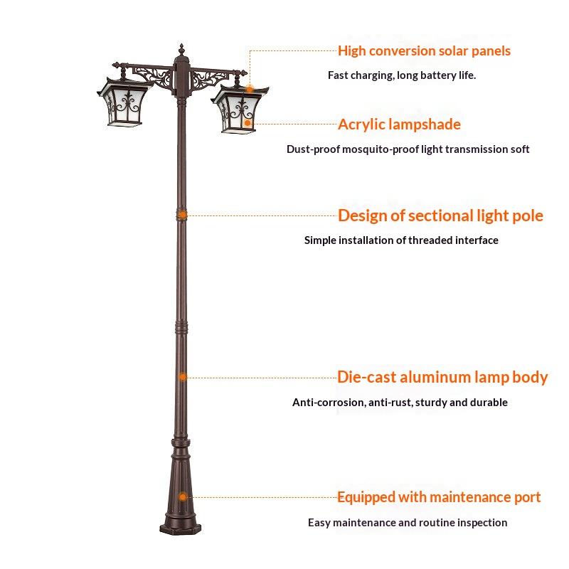 Lampadaire solaire IP65 en acrylique pour jardin, 3 mètres, style chinois, pour aménagement extérieur