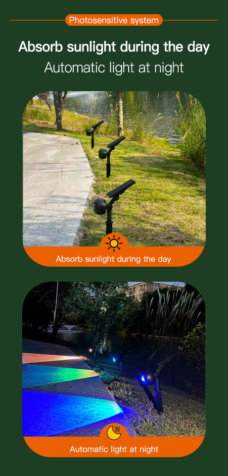 Lampes solaires LED à changement de couleur pour pelouse, étanches IP65, multicolores RGB, avec détecteur de mouvement, à intensité variable, pour jardin extérieur, cour, aménagement paysager