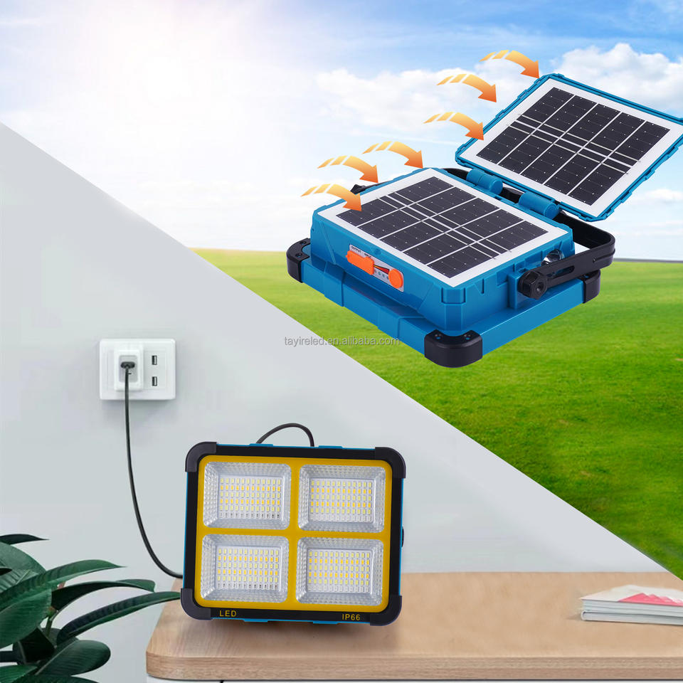 Projecteur solaire LED extérieur, lampe de chantier, IP66, portable, 5 modes, camping, éclairage d'urgence, économie d'énergie, jardin, projecteur solaire LED