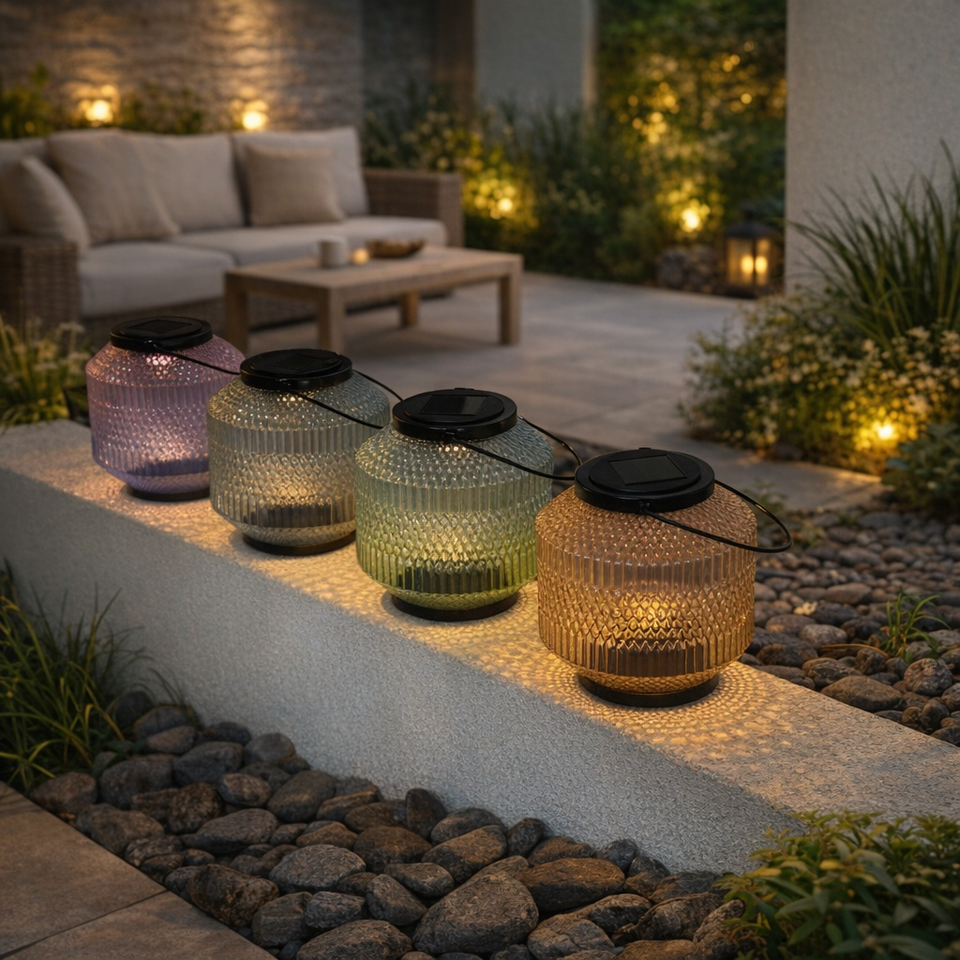 Lanterne solaire d'extérieur étanche, lampe de table LED en verre texturé pour jardin, patio, allée, lumière suspendue pour la décoration de la cour