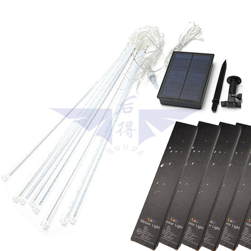 Bande lumineuse LED solaire effet pluie de météores 30cm 50cm 80cm, lumières décoratives RGB pour extérieur, paysage, fêtes et arbres