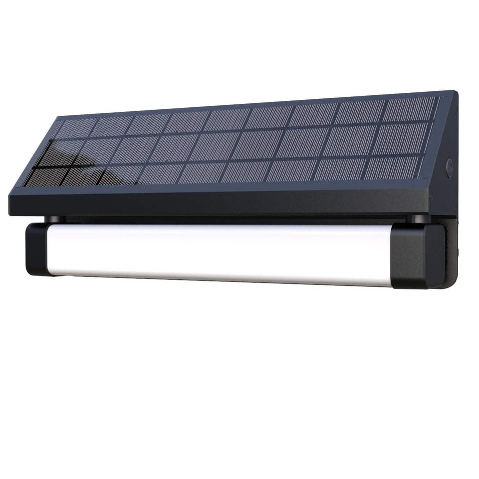 Lampe solaire NGW-12 à LED avec diffuseur en polycarbonate, angle de faisceau de 20 degrés, détection de mouvement, gradation, garantie de 5 ans, forme longue et allongée
