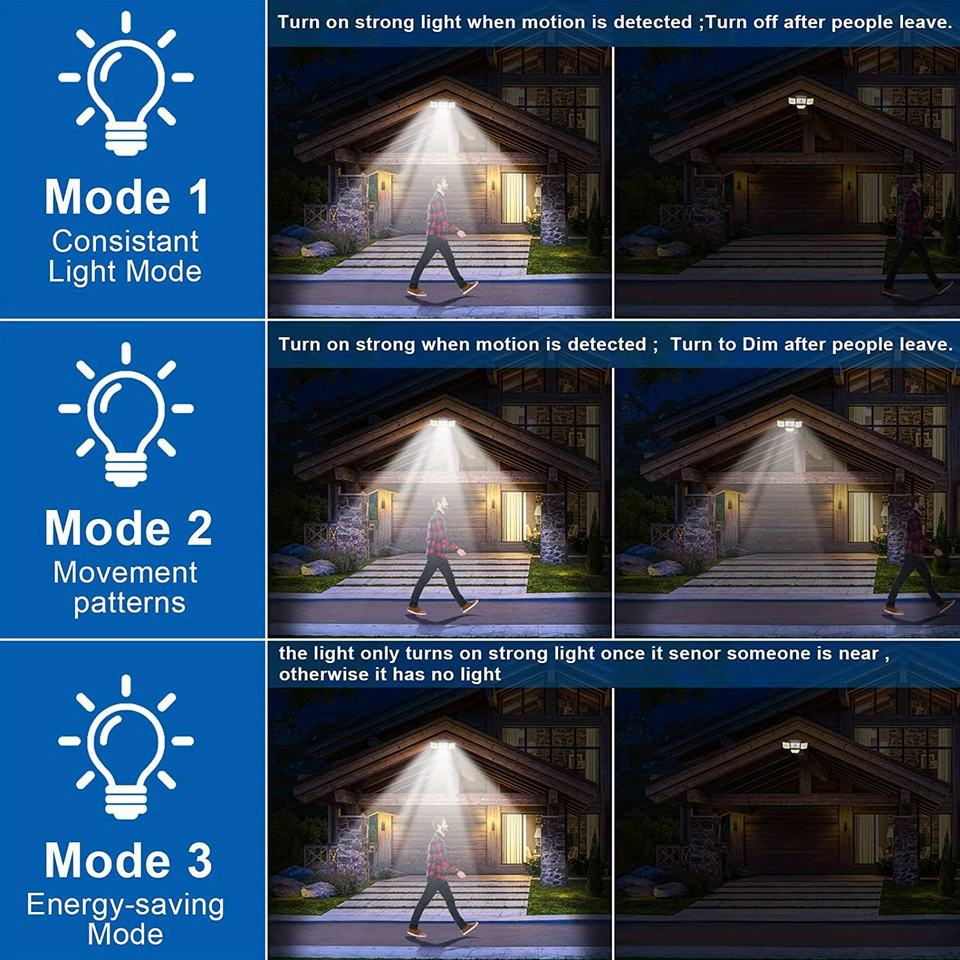 Lampes solaires d'extérieur 278 LED 3000 lumens IP65 étanches avec détecteur de mouvement, 3 modes d'éclairage, lampe murale solaire pour jardin