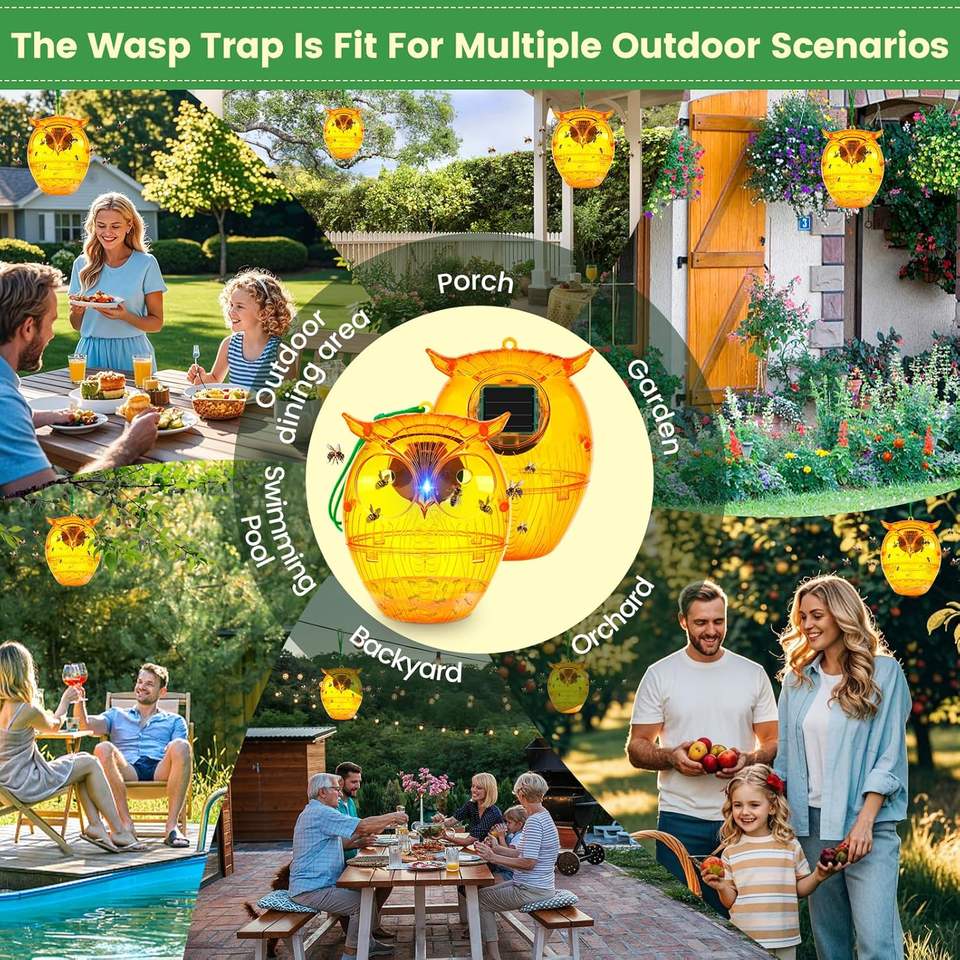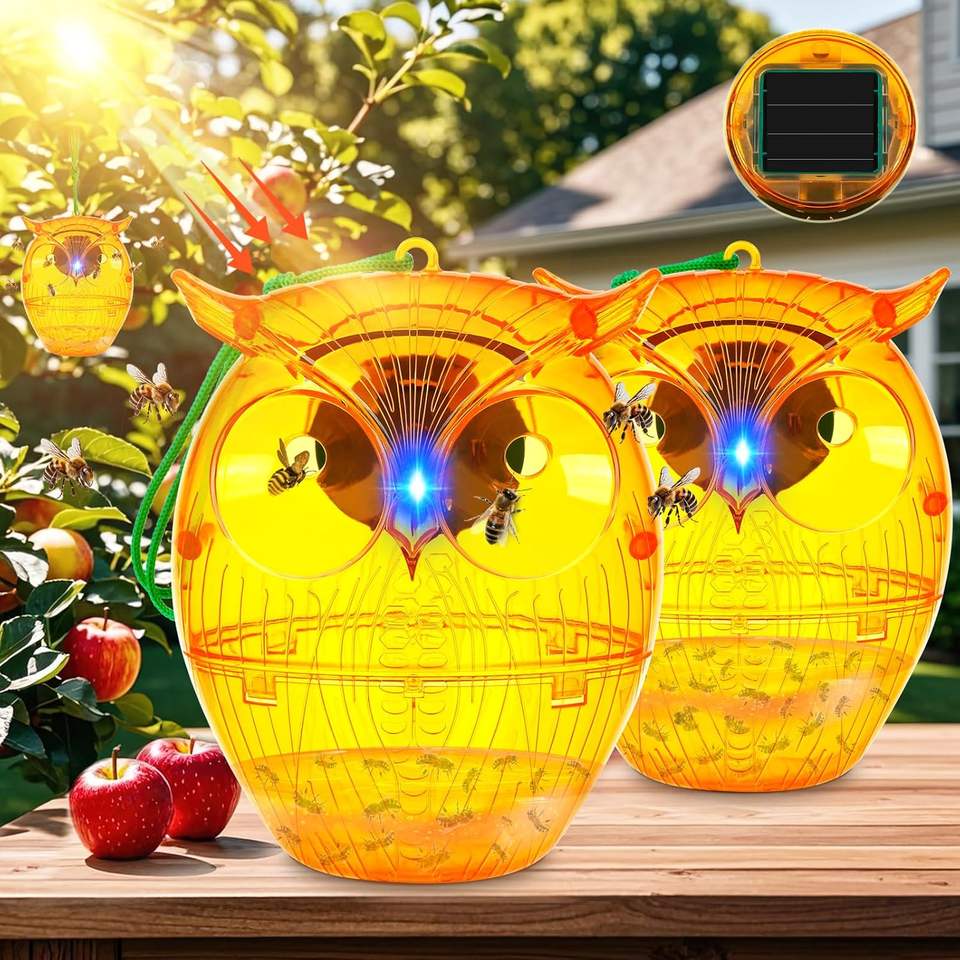 Piège à guêpes et abeilles solaire en forme de hibou avec lumière LED solaire, alimenté électriquement pour les jardins et les cours
