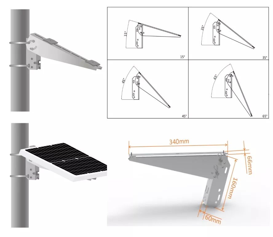 Support de panneau solaire Kit de montage sur poteau Support de montage mural à bras unique pour caméra Système de surveillance CCTV pour caméra d'alimentation solaire