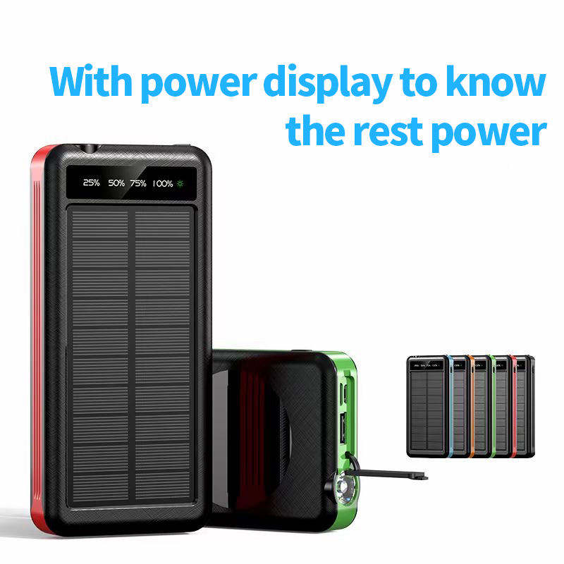 Boîtier de batterie solaire avec câble intégré, logo personnalisable, prise en charge de la charge sans fil, type-C, batterie externe pour téléphones mobiles
