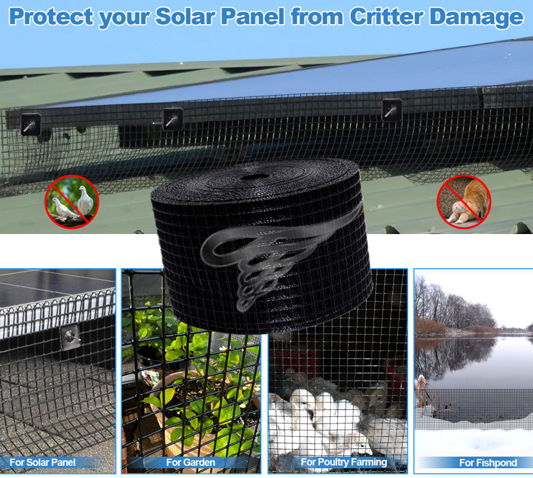Maille de protection pour panneaux solaires - Maille métallique noire 8x100 pieds | Barrière robuste anti-oiseaux et anti-nuisibles pour la sécurité des nettoyages de panneaux solaires