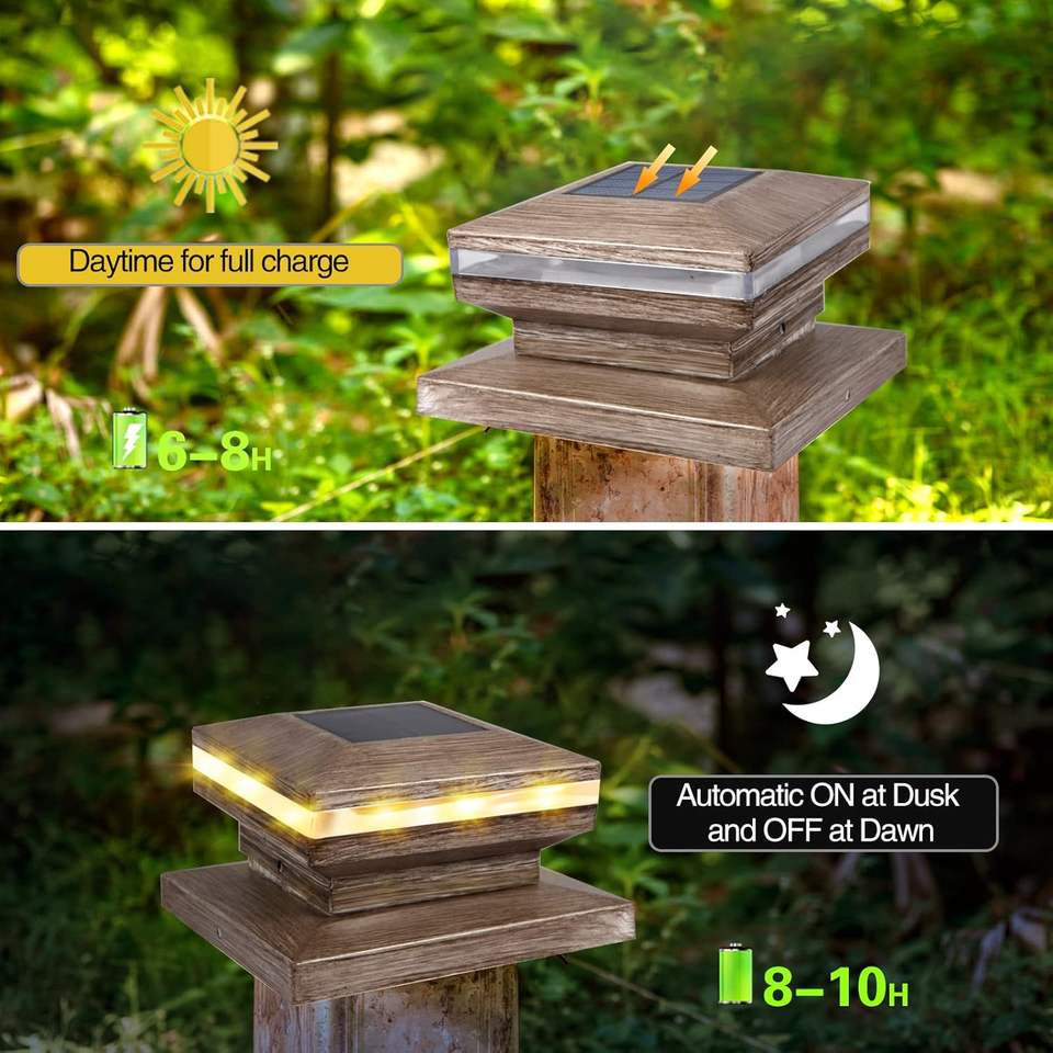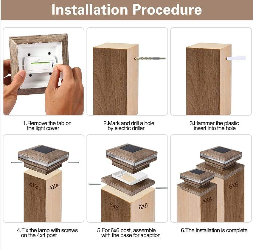 Capuchon de poteau solaire poteau de clôture extérieur capuchons de coquille de grain de bois pour terrasse, poteaux en bois décoratifs de patio