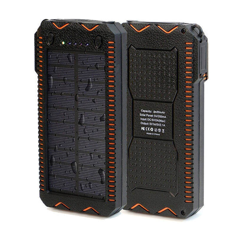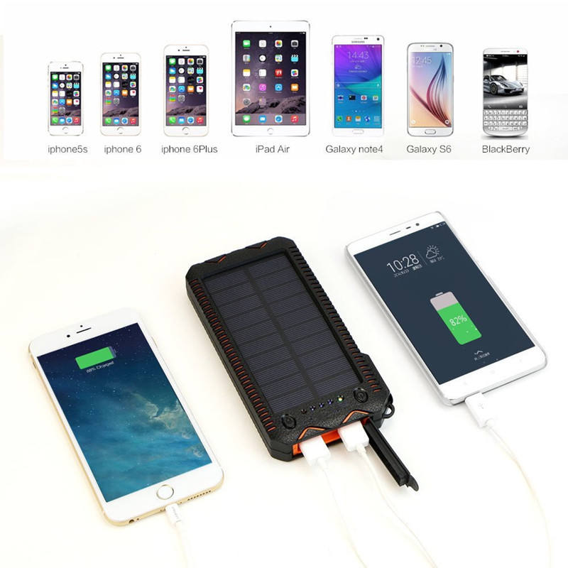 Chargeur solaire 2 Ports 20000mah, batterie externe avec 2 Led et allume-cigare pour Iphone Samsung