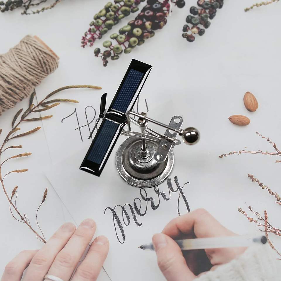 Moulin à vent à énergie solaire Hélice noire Ornements de moulin à vent solaire Décoration intérieure dynamique Jouet scientifique Jouet de physique Solaire