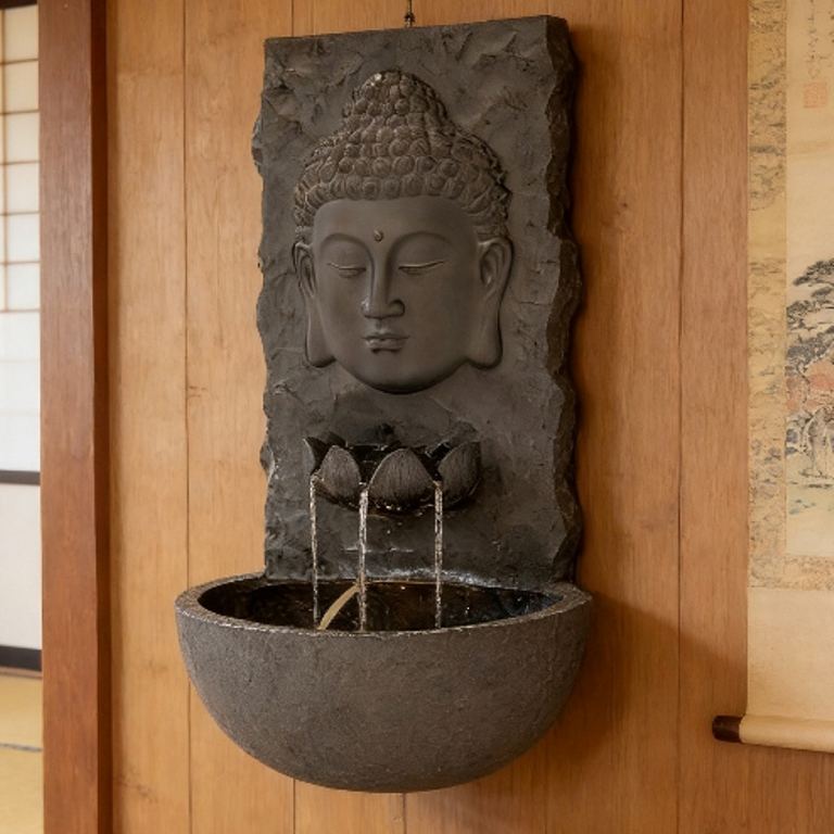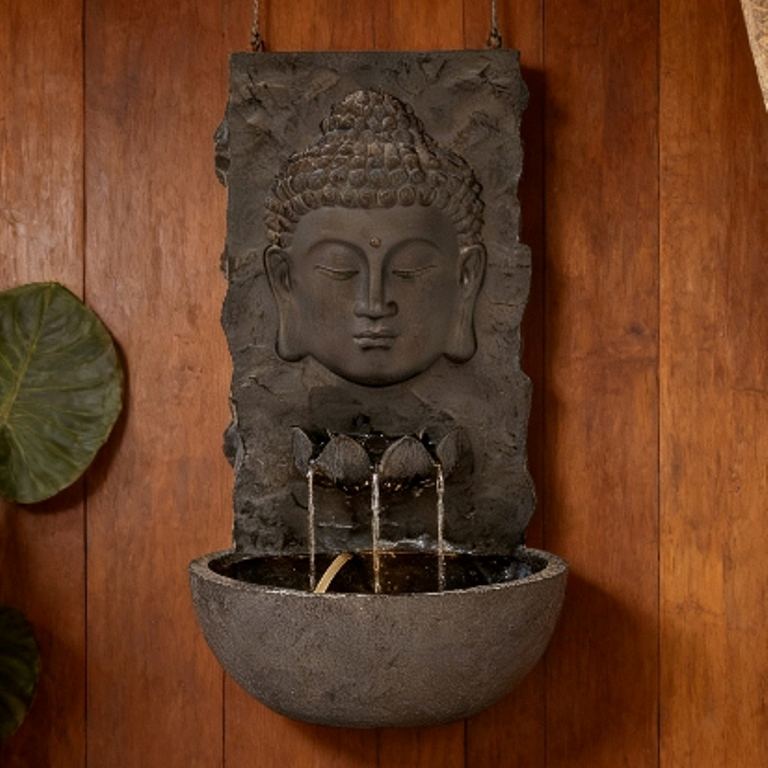 Fontaine murale décorative en résine de fibre de verre rectangulaire, énergie solaire avec batterie, pour l'intérieur et l'extérieur, Bouddha