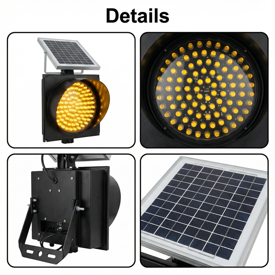 Nom du produit:Tête de feu de signalisation à LED solaire, ambre clignotant, pour avertissement de circulation