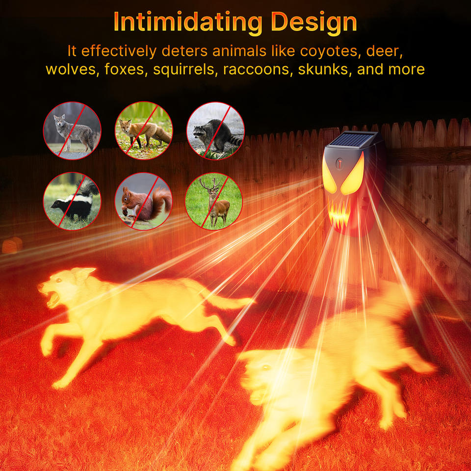 Fournisseur de répulsif à énergie solaire pour animaux Dispositif de répulsif pour animaux à lumière clignotante à flamme puissante pour épouvantail d'extérieur répulsif pour cerfs