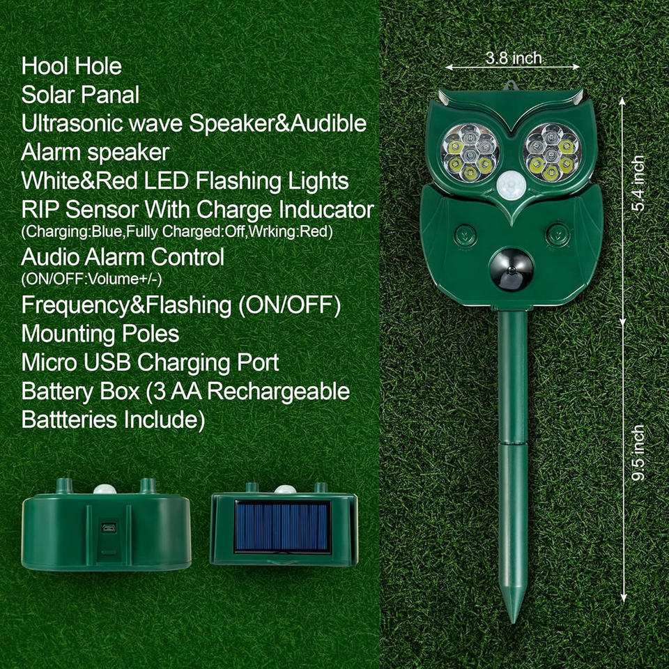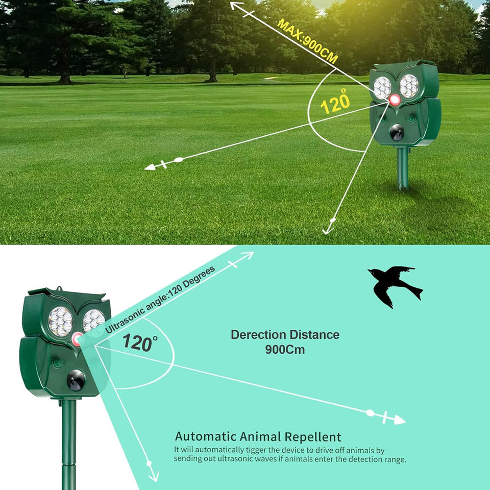 Répulsif animal à énergie solaire capteur de mouvement à économie d'énergie pour chat chien écureuil cerf renard ABS solide extérieur pièges sécurité défenseur