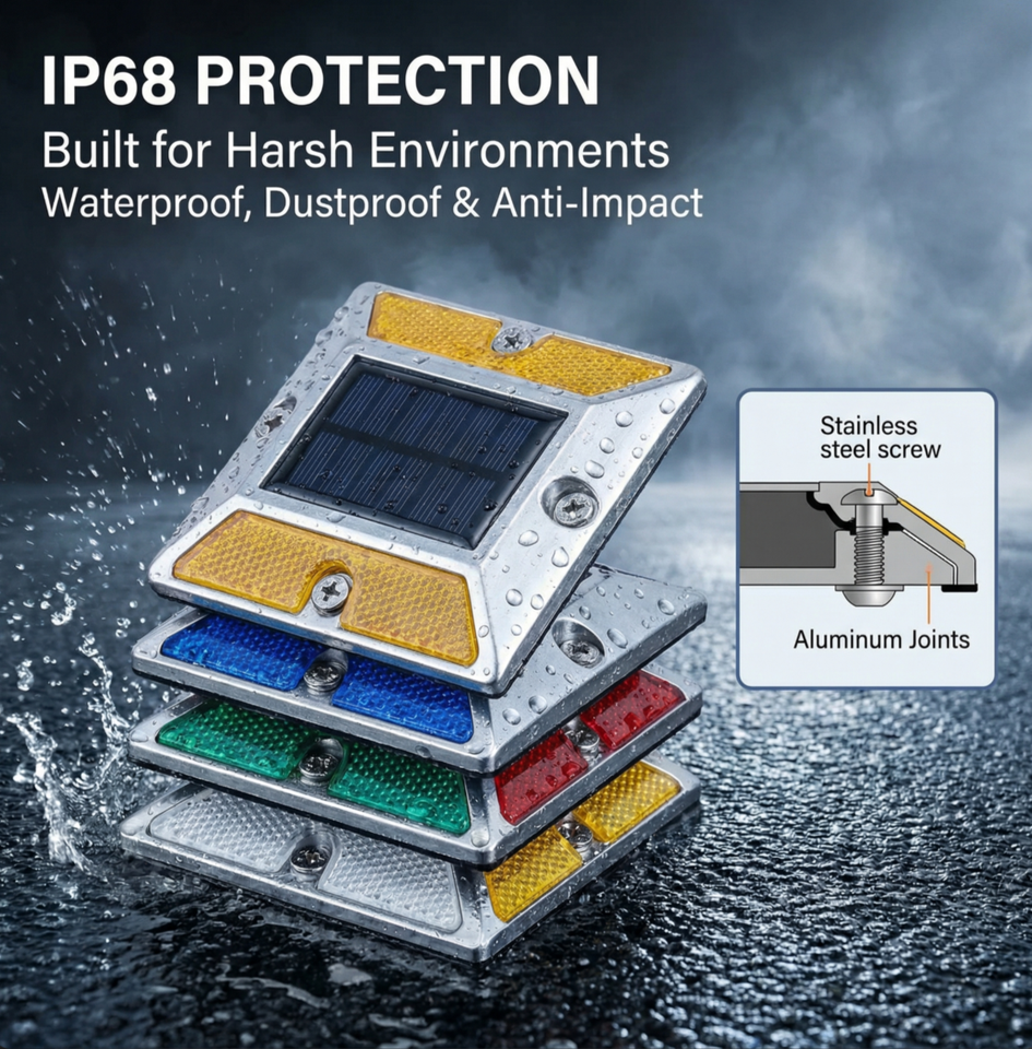 Balises routières LED solaires à effet œil-de-chat IP68, lampes d'avertissement clignotantes, feux de marquage pour autoroutes et pistes