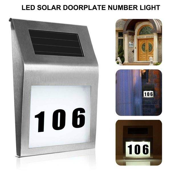 Solar Powered LED Light Sign for House & Street Address & Number Plate Lamp for Door Illuminated Address Plaque