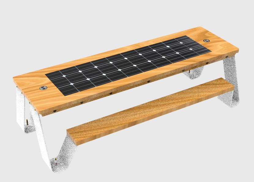 Banc d'extérieur moderne à énergie solaire avec écran LED Banc de bus en métal avec port de charge et toit pour parcs et centres commerciaux