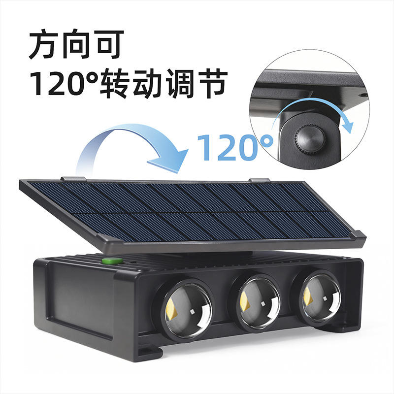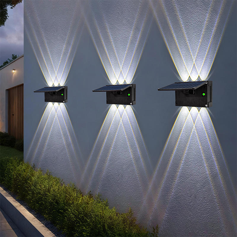 Lumière murale extérieure à énergie solaire, 6 LED, lentille convexe, angle de faisceau de 20 degrés, forme de bande longue, éclairage à haut lumen