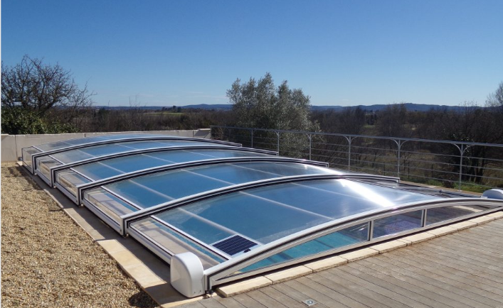 Abri de piscine à énergie solaire avec fonction de motorisation