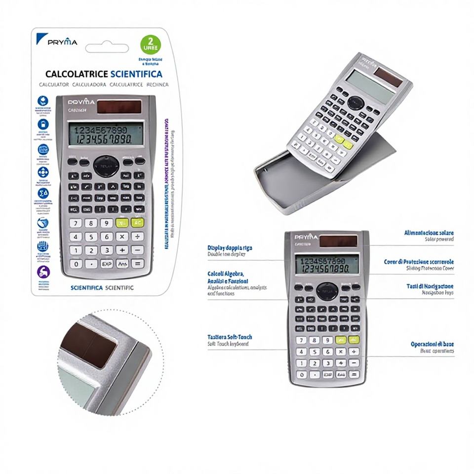 Calculatrice scientifique à énergie solaire Modèle 8055769210247 156x85x20mm pour équipement éducatif et produits de bureau