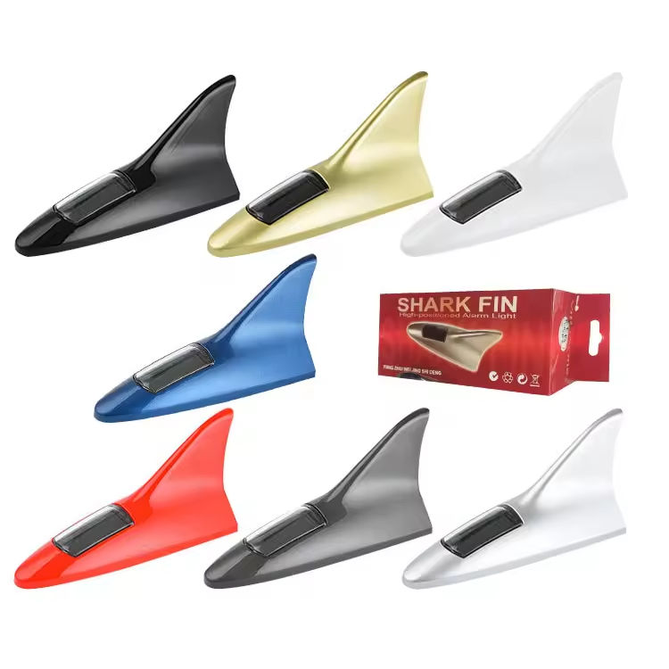 Antenne universelle de toit de voiture en forme d'aileron de requin à énergie solaire 8 LED