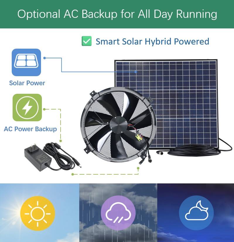 Kit de ventilateur d'extraction mural à énergie solaire avec ventilation à flux axial 24V DC pour serre, hangar, grange