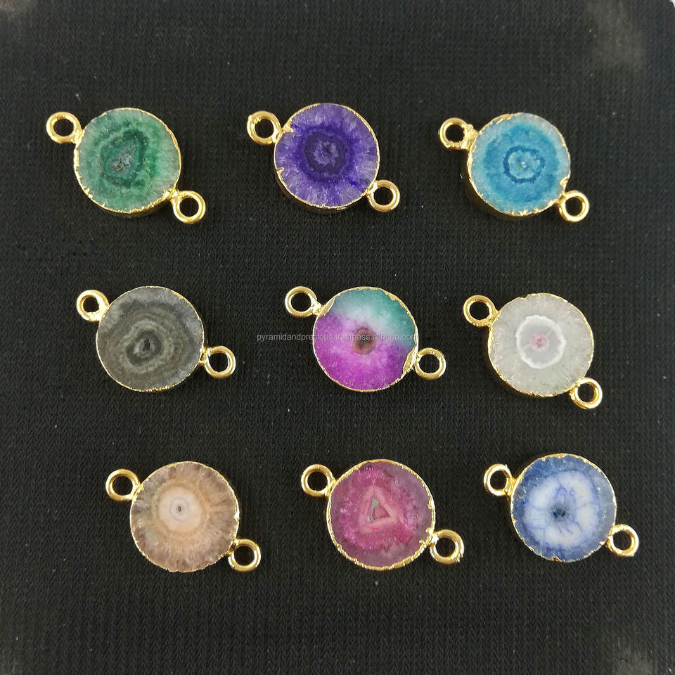 Breloques connecteurs en alliage plaqué or, quartz solaire, rondes, druzy, 13-14 mm, cadeau pour enfants