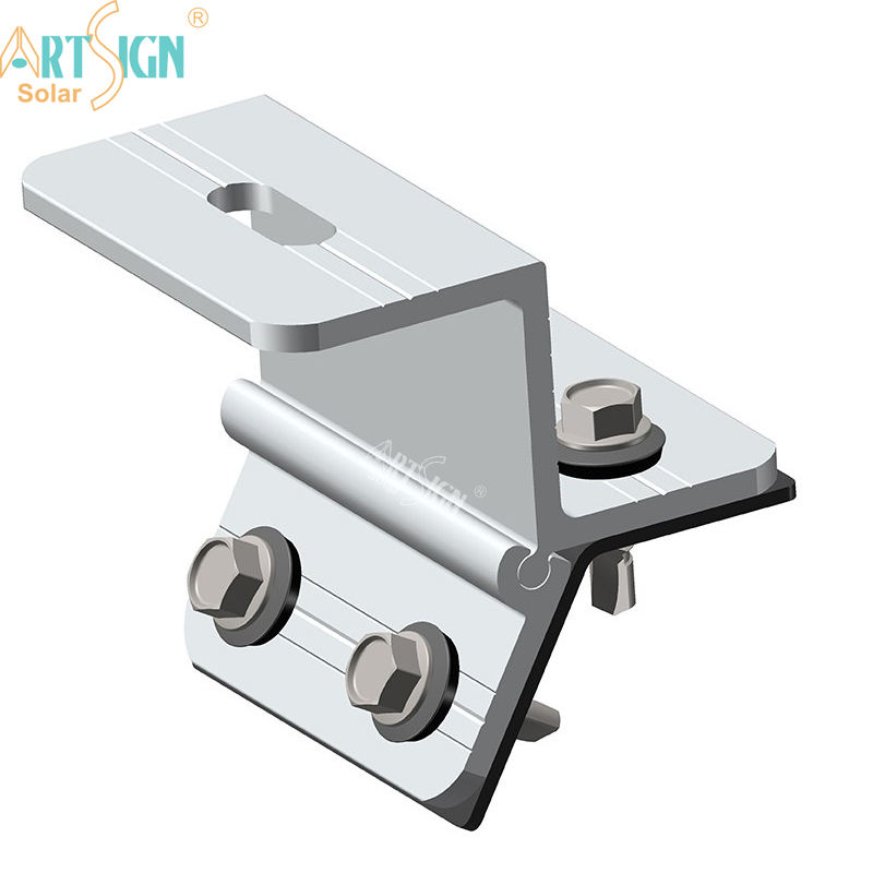 Système de fixation de panneaux solaires sans rail pour toiture, structure de fixation pour toiture en métal à joint debout, clips I Art Sign