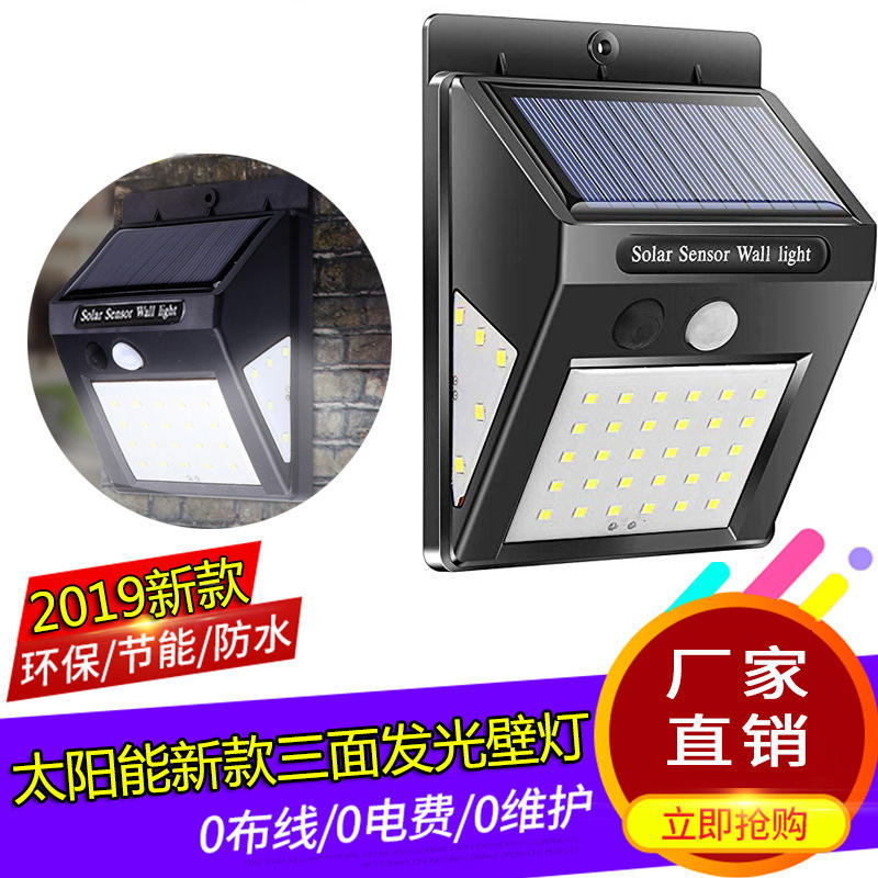 Lampe murale à capteur solaire 30/20+5+5 LED, lampe de patio extérieure étanche, alimentée par énergie solaire 5,5V