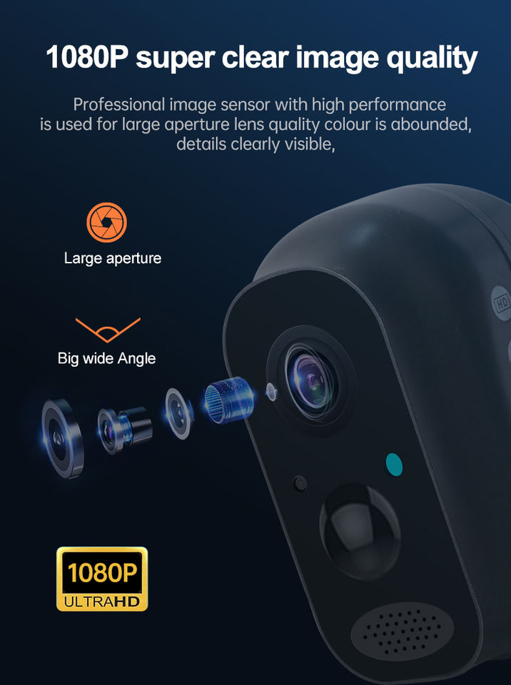 Vision nocturne, Micro intégré, Audio bidirectionnel, Grand Angle, Imperméabilisez/protégez contre les intempériesFonction