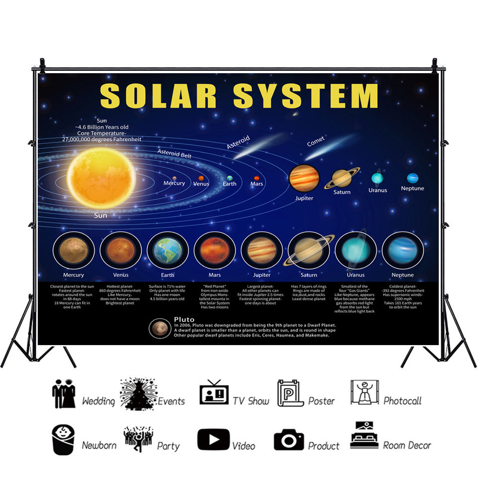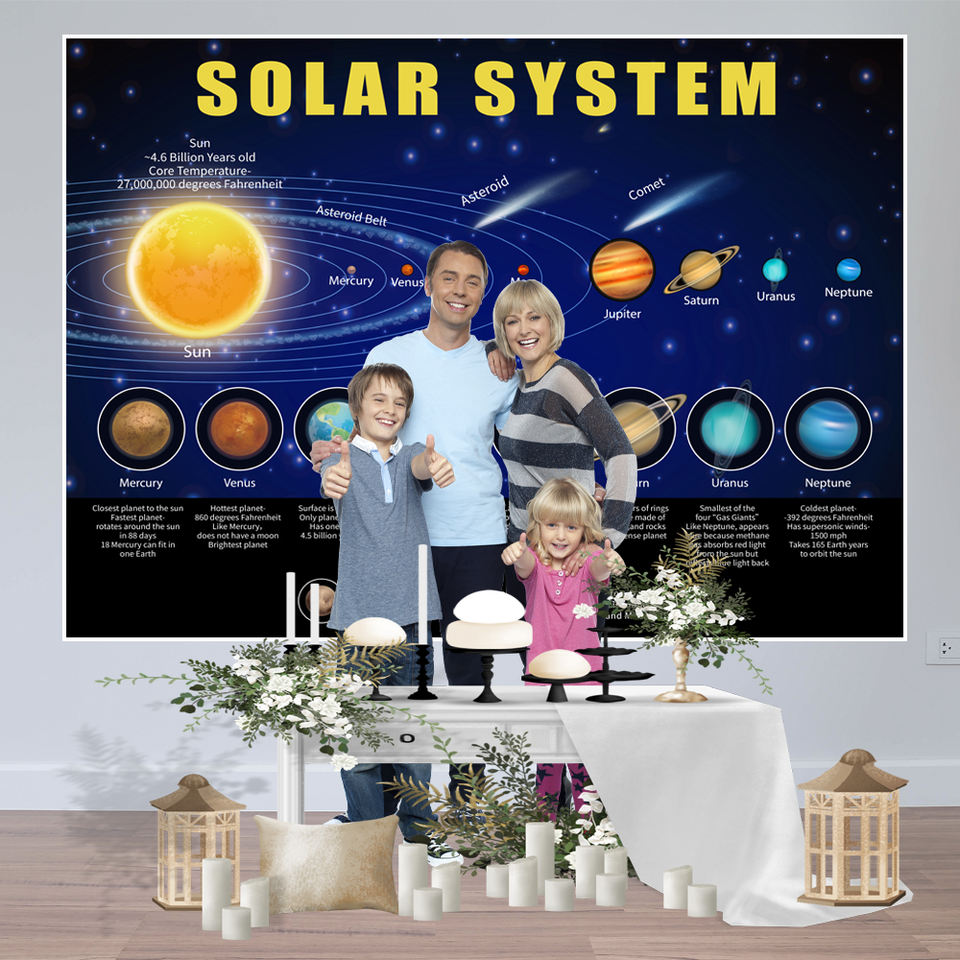 Accessoires de photo de fond de l'espace extra-atmosphérique du système solaire, décoration de fond de fête d'anniversaire de mur de fête à la maison