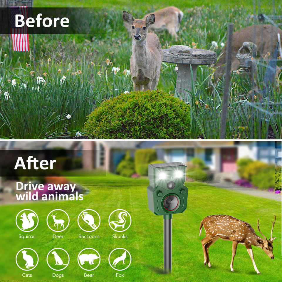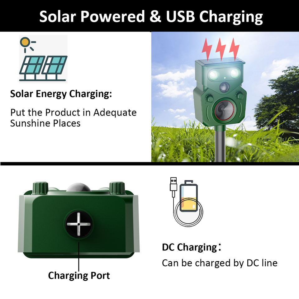 Dispositifs répulsifs solaires à ultrasons pour animaux Répulsif intelligent pour chat de jardin avec capteur PIR Répulsif à ultrasons étanche pour cerfs