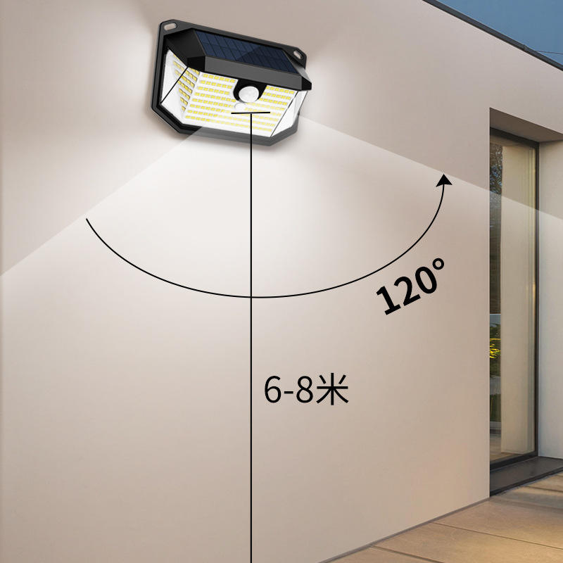 Lampe murale solaire 416 LED, s'allume automatiquement la nuit, lumière de cour extérieure, capteur de présence humaine sur trois côtés, étanche