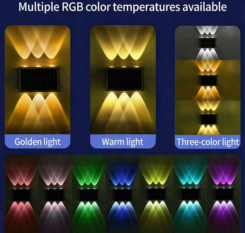 Applique Murale Solaire, Lampe Décorative Extérieure pour Cour, Lumière d'Ambiance Haut-Bas pour Mur de Maison, Applique Murale LED à Énergie Solaire