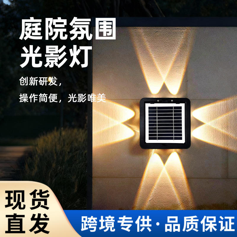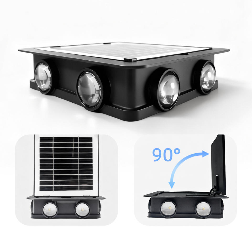 Lampe murale solaire extérieure LED carrée, éclairage sur 4 côtés, villa, cour, balcon, jardin, clôture